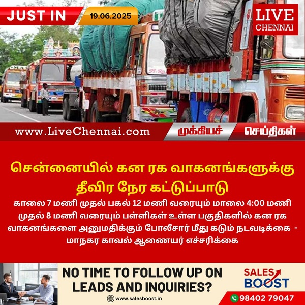 காலை 7 மணி முதல் பகல் 12 மணி வரையும் மாலை 4:00 மணி முதல் 8 மணி வரையும் பள்ளிகள் உள்ள பகுதிகளில் கன ரக வாகனங்களை அனுமதிக்கும் போலீசார் மீது கடும் நடவடிக்கை – மாநகர காவல் ஆணையர் எச்சரிக்கை