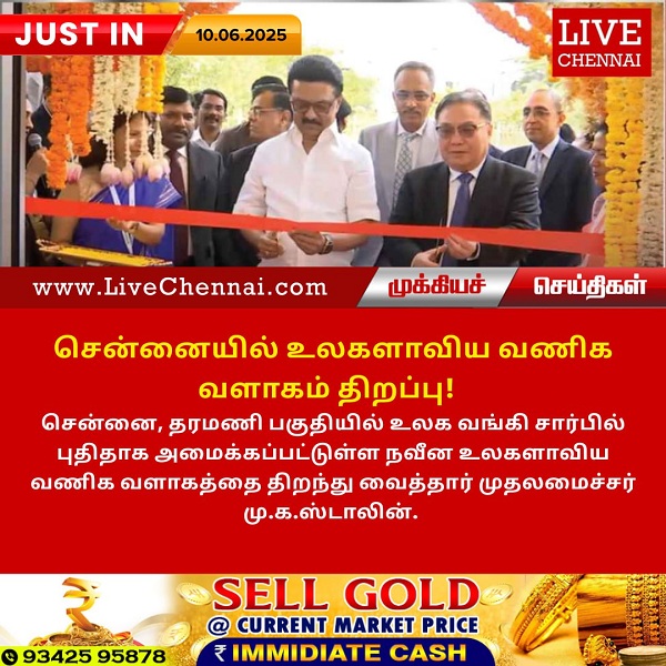 சென்னை, தரமணி பகுதியில் உலக வங்கி சார்பில் புதிதாக அமைக்கப்பட்டுள்ள நவீன உலகளாவிய வணிக வளாகத்தை திறந்து வைத்தார் முதலமைச்சர் மு.க.ஸ்டாலின்.