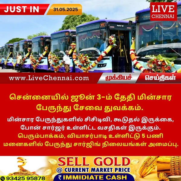 மின்சார பேருந்துகளில் சிசிடிவி, கூடுதல் இருக்கை, போன் சார்ஜர் உள்ளிட்ட வசதிகள் இருக்கும். பெரும்பாக்கம், வியாசர்பாடி உள்ளிட்டு 5 பணி மனைகளில் பேருந்து சார்ஜிங் நிலையங்கள் அமைப்பு.
