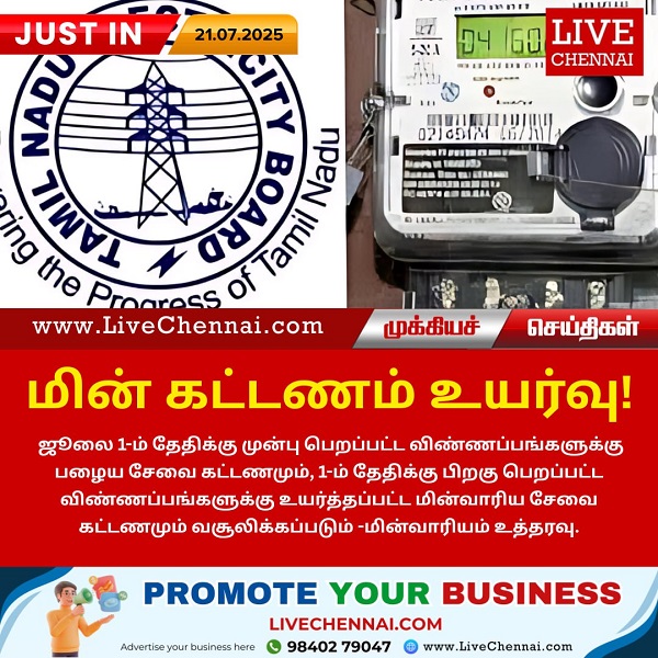 ஜூலை 1-ம் தேதிக்கு முன்பு பெறப்பட்ட விண்ணப்பங்களுக்கு பழைய சேவை கட்டணமும், 1-ம் தேதிக்கு பிறகு பெறப்பட்ட விண்ணப்பங்களுக்கு உயர்த்தப்பட்ட மின்வாரிய சேவை கட்டணமும் வசூலிக்கப்படும் -மின்வாரியம் உத்தரவு.