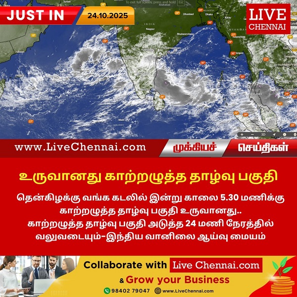 தென்கிழக்கு வங்க கடலில் இன்று காலை 5.30 மணிக்கு காற்றழுத்த தாழ்வு பகுதி உருவானது.
