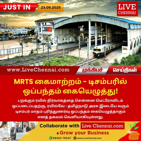 பறக்கும் ரயில் நிர்வாகத்தை சென்னை மெட்ரோவிடம் ஒப்படைப்பதற்கு, ரயில்வே – தமிழ்நாடு அரசு இடையே வரும் டிசம்பர் மாதம் புரிந்துணர்வு ஒப்பந்தம் கையெழுத்தாகும் எனத் தகவல் வெளியாகியுள்ளது.