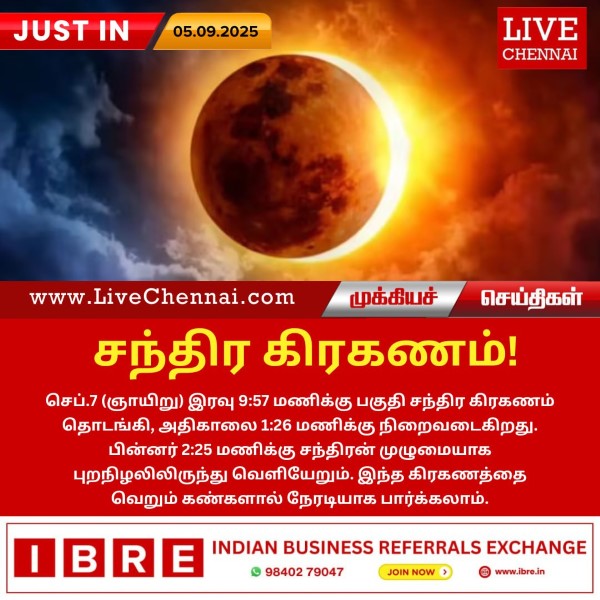 செப்.7 (ஞாயிறு) இரவு 9:57 மணிக்கு பகுதி சந்திர கிரகணம் தொடங்கி, அதிகாலை 1:26 மணிக்கு நிறைவடைகிறது. பின்னர் 2:25 மணிக்கு சந்திரன் முழுமையாக புறநிழலிலிருந்து வெளியேறும். இந்த கிரகணத்தை...