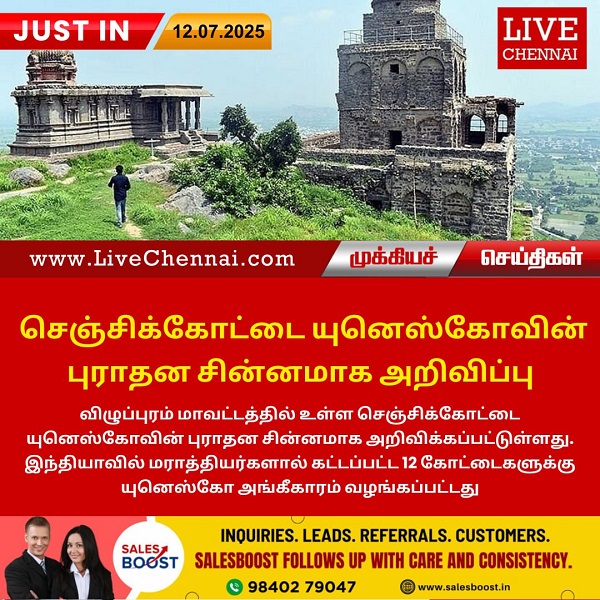 விழுப்புரம் மாவட்டத்தில் உள்ள செஞ்சிக்கோட்டை யுனெஸ்கோவின் புராதன சின்னமாக அறிவிக்கப்பட்டுள்ளது. இந்தியாவில் மராத்தியர்களால் கட்டப்பட்ட 12 கோட்டைகளுக்கு யுனெஸ்கோ அங்கீகாரம் வழங்கப்பட்டது.