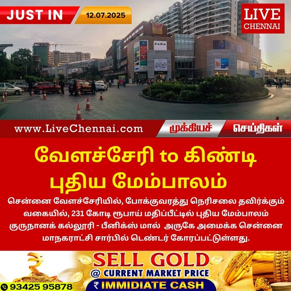 சென்னை வேளச்சேரியில், போக்குவரத்து நெரிசலை தவிர்க்கும் வகையில், 231 கோடி ரூபாய் மதிப்பீட்டில் புதிய மேம்பாலம் குருநானக் கல்லூரி – பீனிக்ஸ் மால் அருகே அமைக்க சென்னை மாநகராட்சி சார்பில் டெண்டர் கோரப்பட்டுள்ளது.