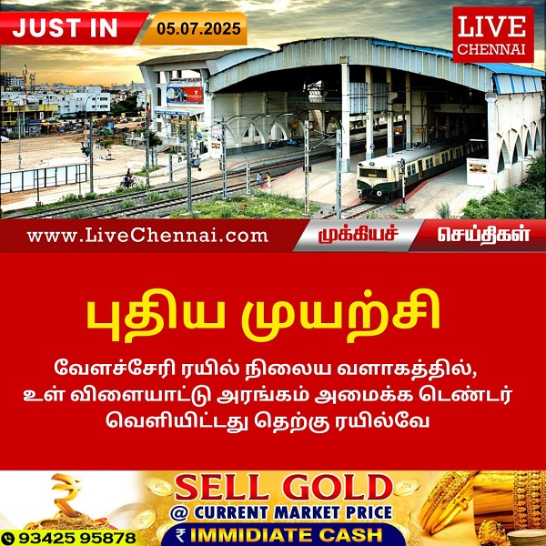 Posted on : July 5, 2025 வேளச்சேரி ரயில் நிலைய வளாகத்தில், உள் விளையாட்டு அரங்கம் அமைக்க டெண்டர் வெளியிட்டது தெற்கு ரயில்வே.